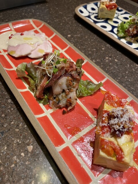 以前訪問したとき美味しかったと、家族のリクエストで再訪。前菜は生シラスのカルパッチョ、ルッコラのサラダ、生ハムとモルタデッラ サラミの盛り合わせを選択。オリーブは前回しょっぱかったのでパス。モルタデッ...