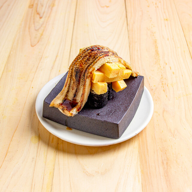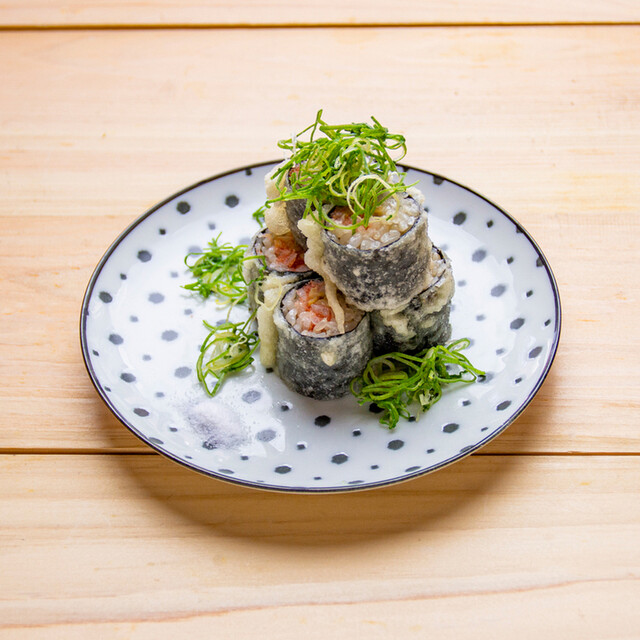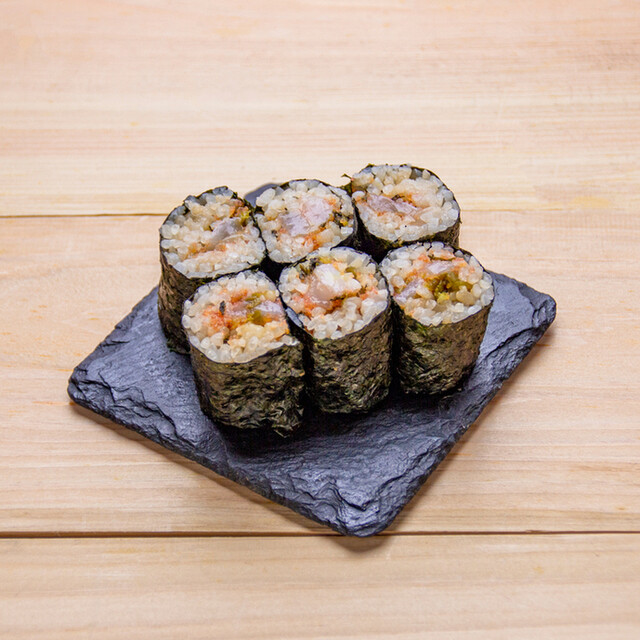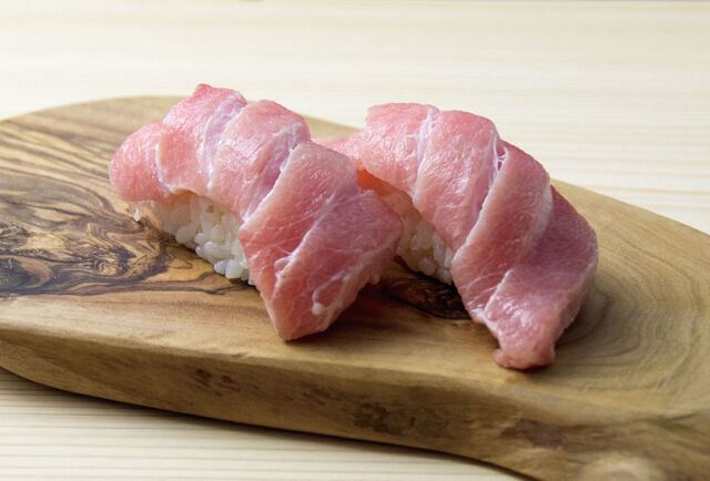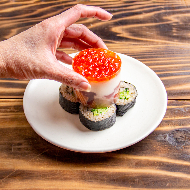 マウント寿司は海苔巻きの上にマグロ、とろろ、いくら、とびっこ。