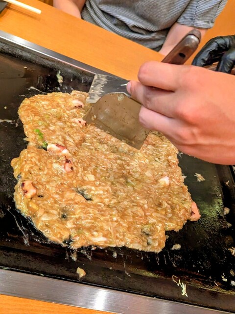 お好み焼きは中がトロトロ、もんじゃは最後におせんべいのようになった部分までしっかり楽しめました。思ったよりも量があり、しっかりお腹も満たされ大満足。