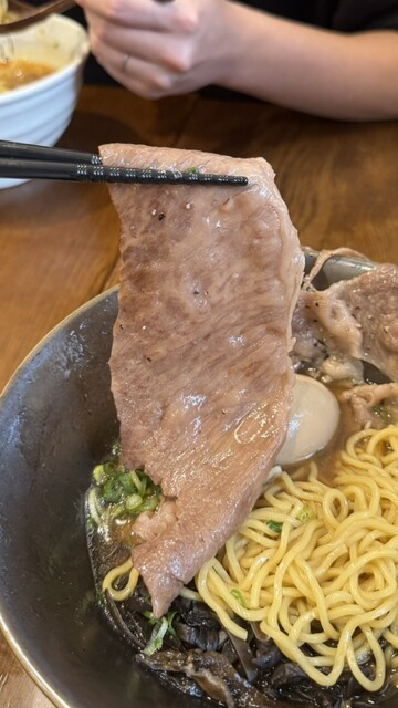 今回いただいた和牛ラーメンは、大きくスライスした和牛が乗っていてラーメンとの相性は抜群。