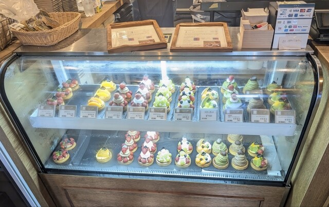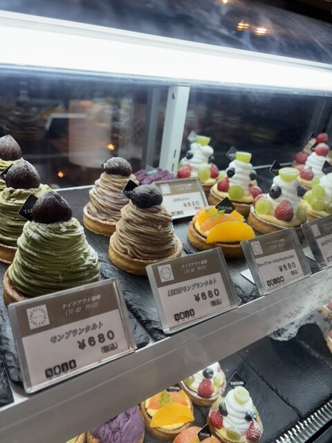 カウンターのショーケースに色々タルトが