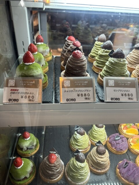 イチゴをたっぷり使用した「プレミアムイチゴタルト」をはじめとした「フルーツタルト」や「焼きタルト」、モンブランなど種類豊富にご用意!