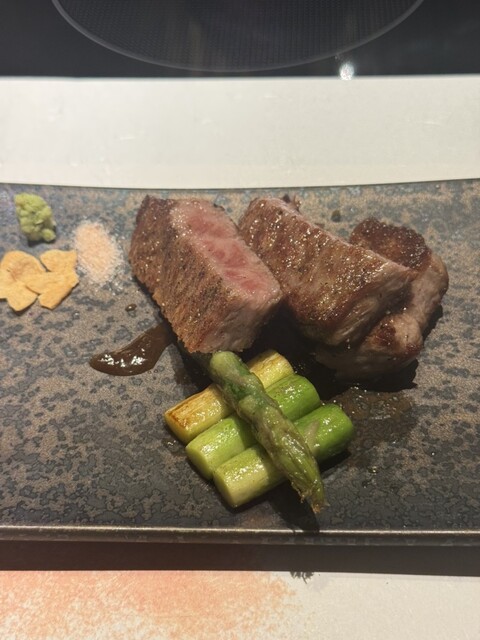 A5ランクの最上級和牛のヒレ肉やサーロインを使用した、ステーキとすき焼きの入ったコースです。 前菜からデザートまで。