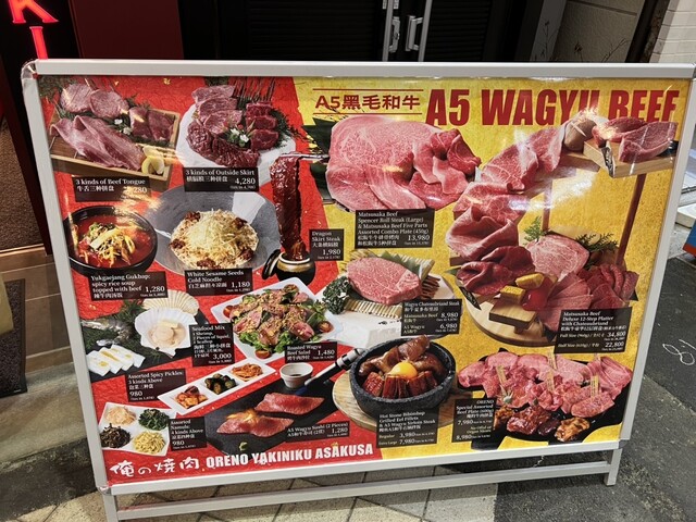 浅草駅から徒歩6分ぐらいにある俺の焼き肉浅草店にいってきました。 中は大変賑わっていて、外国人の方がほとんどでした。お店は浅草使用で落ち着く雰囲気でゆっくりできる空間でした。 オーダーが入ると太鼓が鳴るのでワクワク感に満たされます。