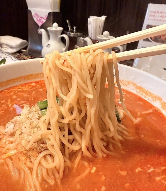 担々麺は、スープの胡麻の香ばしさが際立ち、濃厚でクリーミーな口当たりが特徴的。胡麻の香りが豊かで、スパイスの刺激が程よく調和しています。ピリ辛ながらもマイルドなコクが広がり、麺にしっかり絡んで最後まで飽きさせない味わい。担々麺の深みある風味が楽しめる一品です。