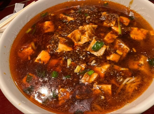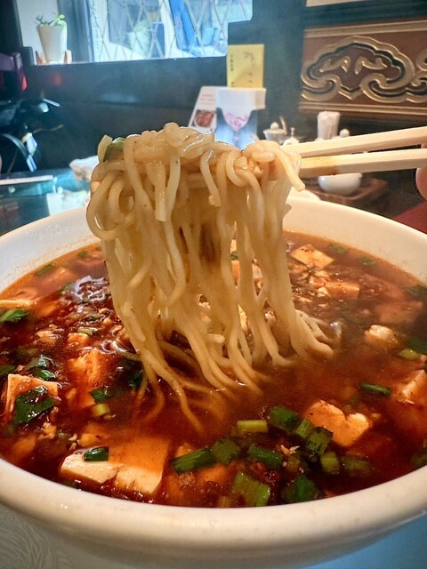 麻婆麺は、山椒のピリリとしたしびれが絶妙で、濃厚な麻婆餡が麺にしっかりと絡む贅沢な一杯。辛味が強めながらもスパイスの配合が絶妙で、ただ辛いだけでなく、素材本来の旨味が活かされています。特に山椒の風味が後味に残り、麻婆料理の真髄を堪能できる一品でした。