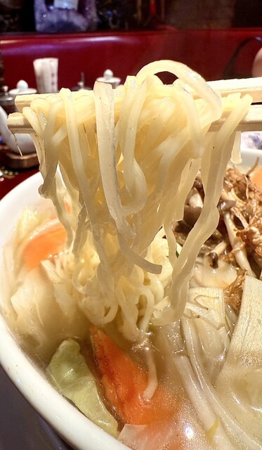 具材には、細かく切られた野菜や豚肉がたっぷりと入り、歯ごたえが楽しめる。特に、細麺との絡みが抜群で、スープがしっかりと染み込んだ麺を一口食べると、その豊かな味わいに思わず唸ってしまう。