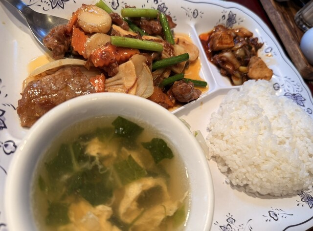 チキンのBランチも絶品で、ボリュームがありながらも、しっとりとした柔らかいチキンが口の中でとろけるような食感。甘辛いタレがチキンによく絡み、シンプルな見た目ながらも食欲をそそります。ランチメニューとしては驚くほどのクオリティで、ボリュームも満点。リーズナブルに本格的な中華が楽しめる点も魅力的です。