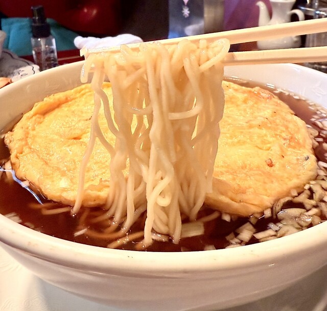 そして、麺はしっかりとコシがありながらも喉越しが良く、卵とあんをしっかりと抱き込んでくれる理想的な仕上がり。レンゲを使いながら麺と卵を同時に口に運べば、異なる食感と味の調和が広がり、一気に幸せな気分に包まれます。