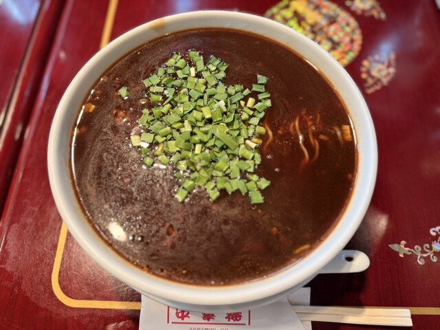 中華楼の「挽肉とニラの水餃子入り辛味噌おそば」は、辛味・旨味・コクの三拍子が揃った感動の一杯。濃厚な辛味噌スープは深みのある味わいで、ピリッとした辛さがクセになります。さらに、ジューシーな挽肉とニラがスープに溶け込み、旨みを何倍にも引き立てます。