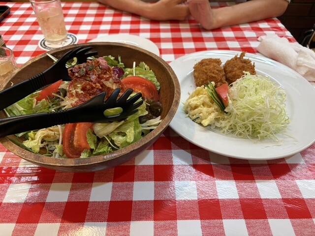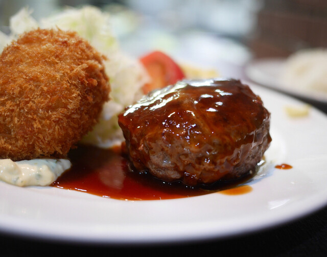 すっごく人気のお店なんですね〜 午後1時過ぎでも、暫く待たされるし その後も 続々とお客さんが続きます。 ランチタイムサービスメニューから ◎ハンバーグ・カニクリームコ... 詳細を見る