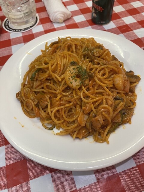 シメは、隣の人が食べていて気になったナポリタンです。昔ながらのナポリタンですが、味は抜群です。見た目だとケチャップの味が強いのかなと思いきや、そんなことはありません。結構お腹いっぱいでしたが、スルスルと胃袋に入っていきました。