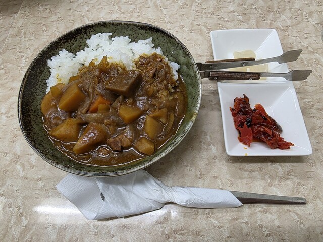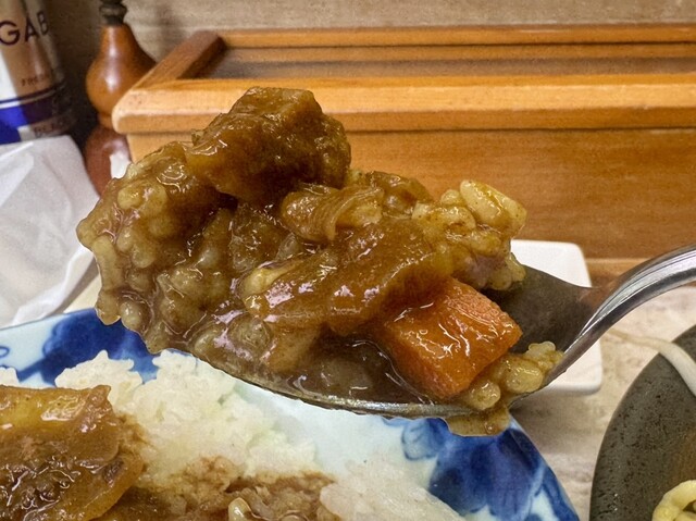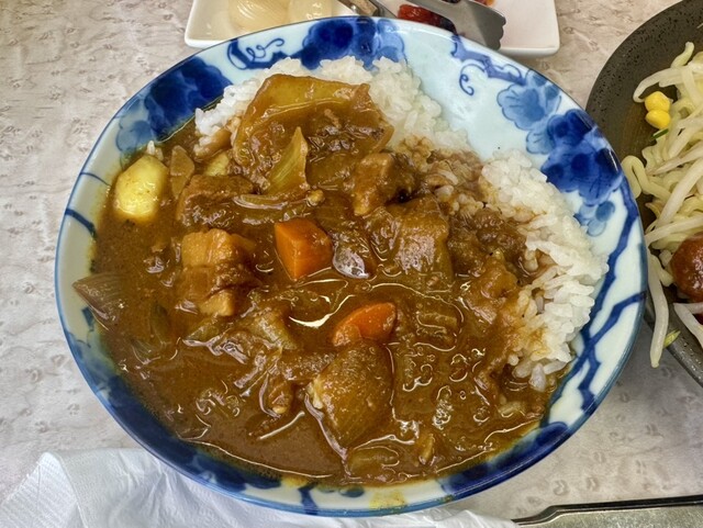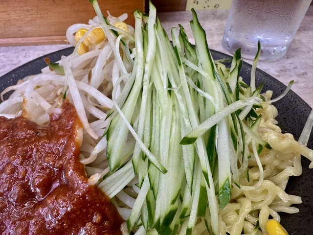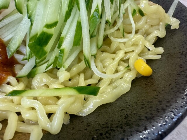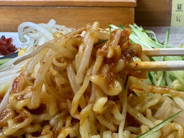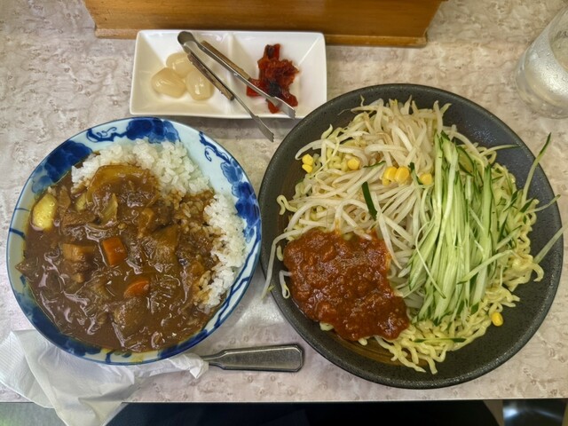 どれくらい辛いか?と言うと、後から食べたカレーがどれくらい辛いか?が分からないくらい(笑)。とはいえ食べ進めると麺の水気で緩和されては行くんだけど、この辛さはなかなか無いと思う。それでも味噌の風味ともやし、キュウリのシャキシャキ感が相まって、記憶に残る味をしている。また半カレーライスと言うが、具がし... 詳細を見る