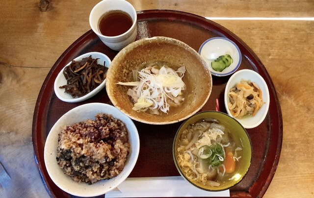 蔵前で、お昼から夜遅くまで、「ちゃんとしたご飯」が食べられる貴重なお店。平日の14時頃、ランチL.Oに滑り込みました。 ランチは、名物の「寝かせ玄米」と、日替わりの主菜、汁もの、おばんざいを組み合わせるセルフ形式。ハレ箱膳定食(主菜あり/1,100円)、箱膳定食(主菜なし/850円)があり、せっかくなので、主菜ありを注文しました。 この日の主菜は、大根鶏スープ煮。おかず3品は、ポテトサラダ... 続きを読む»