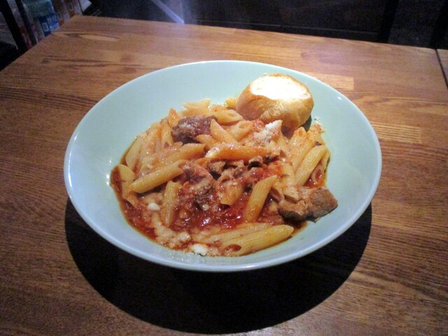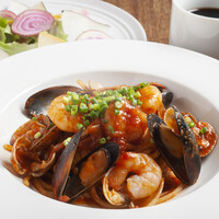 ・魚介たっぷりのトマトソースパスタ