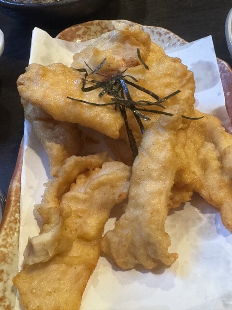 やよい軒をスルーして入ってみた。 ランチ鶏南蛮定食。 夜に来たことはあったけどランチは初めて。 正直、満足度低めでした。 ライスと薄い南蛮を食べるだけみたいな感じで、定食っぽくはなかった。 付け合わせのキャベツは2、3口で終了。 味噌汁薄めで具がない。 南蛮は少し固めで薄い。 しかし米美味しい! 「おかわり無料」 ってなってたけど、デフォでそこそこ入って... 詳細を見る