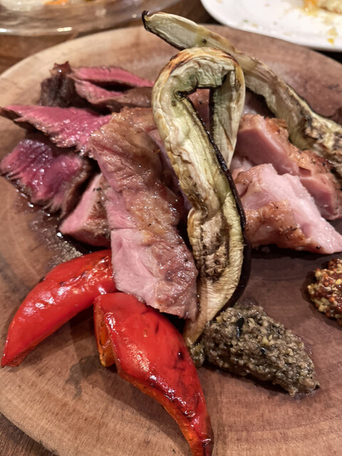 牛、豚、鶏のグリルと色々なタパスを