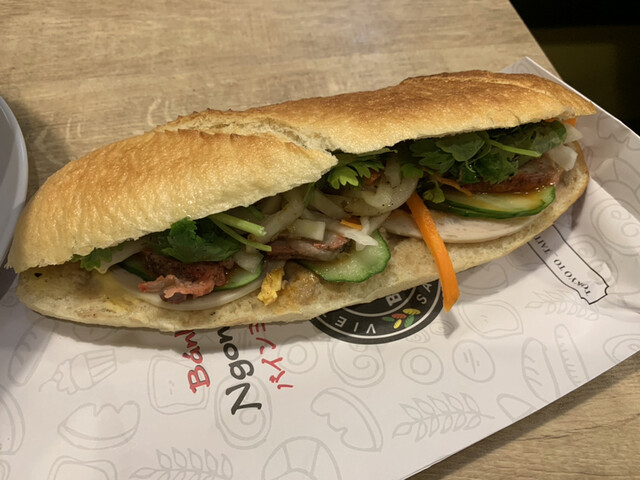 浅草橋のバインミーゴンゴンさん ずっと気になってましたが正直めちゃ入りづらくて入り口前の食券機を見ても悩みました。 意を決してスペシャルバインミー780円を買って入店するとこの... 詳細を見る
