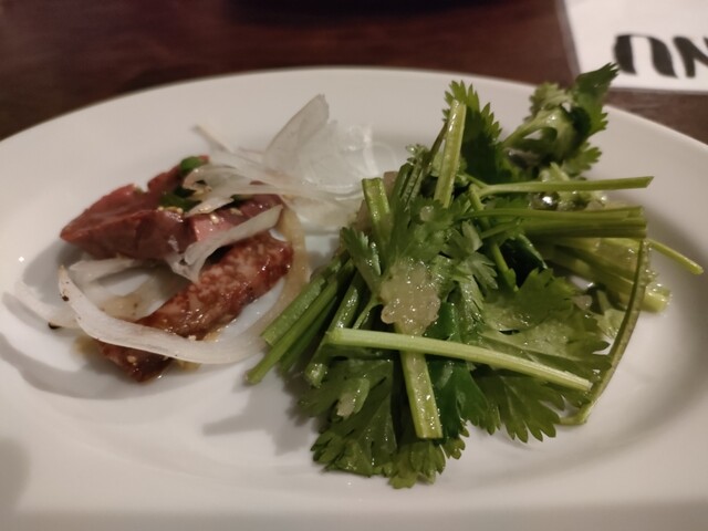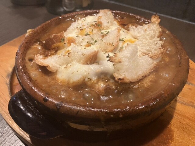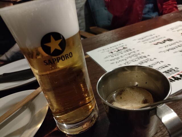 お通しはオニオングラタンスープ。外がめちゃ寒かったので、ホッと温まるスープに舌鼓を打ちながら、ビールをぐびぐび。ビールを...