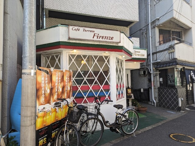 西日暮里駅のJRの線路東側、道灌山通りを渡ってさくら水産の横を抜け、一本裏手の道沿いにある喫茶店「フィレンツェ」。お休みの日の14時過ぎに初訪問、店名の通り白貴重のイタリアンぽい外観。