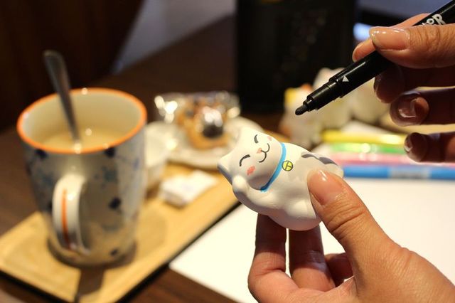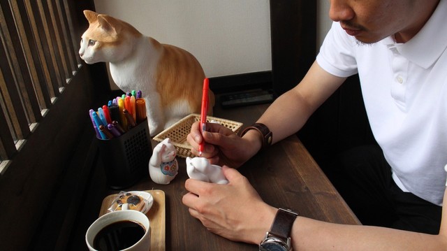 個性満点の招き猫の絵付けをお手軽簡単に体験しながら、コーヒーやクッキーも一緒に楽しめます。