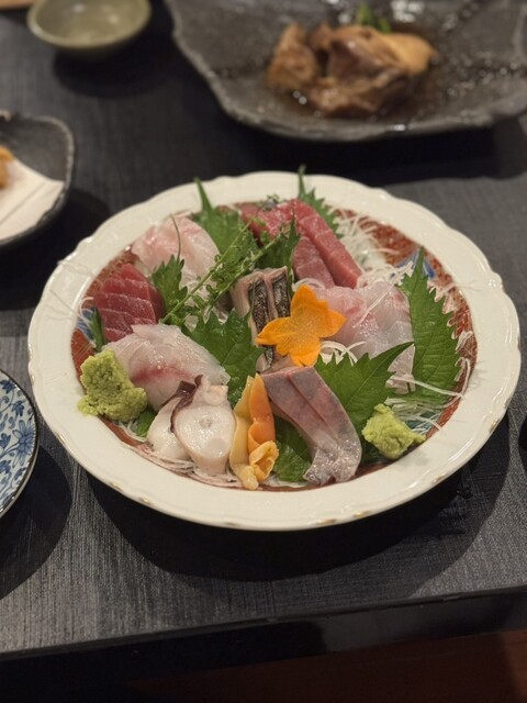 お任せ刺し盛は、まぐろの中トロ、コチ、ヘダイ、クロムツ、ホウボウ、イサキ、ヤリイカ、等...