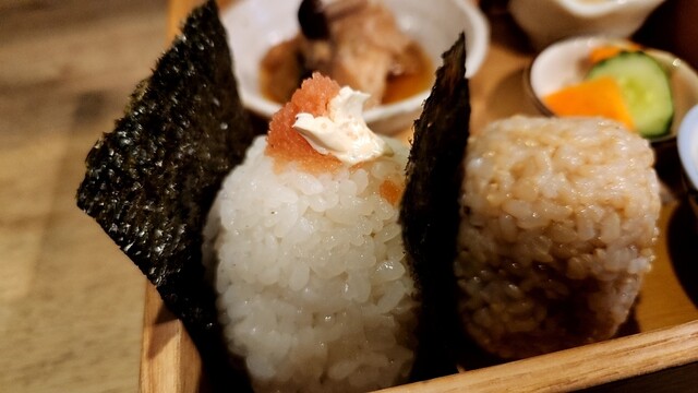 当店は農家直送のコシヒカリを使用し、羽釜で炊き上げたおにぎりを提供しています。注文を受けてから握るスタイルで、できたての味を楽しめるのが魅力!具材は30種類以上あり、全国から厳選した味噌や醤油、風味豊かな有明産の海苔で包んでいます。木のぬくもりが感じられる店内で、前身の昭和の喫茶店で培われたコーヒーや、老舗茶園セレクトのほうじ茶もご提供。和と洋が調和する空間で特別なひとときをお過ごしください♪