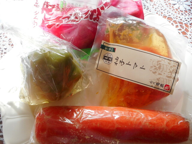 やなぎに桜さんで扱ってる、横浜濱漬(有)上岡食品さんの「田舎沢庵 昔ながらのすっぱい沢庵」が届きます。丸々の沢庵漬が、ナイロンポリ袋に脱気パックされてます。