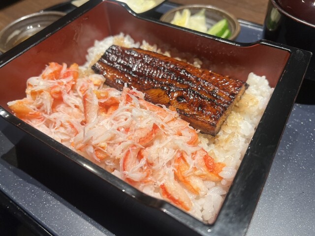 こちらのお店では鰻だけでなく、なんと、蟹もあれこれありました。贅沢な組み合わせが魅力でしかありません!さらに自然薯にもこだわっているとのことで、今回は鰻と蟹の両方を味わえる鰻&蟹のお重をメインとしてそこに自然薯をプラス。まずはそのままいただき、鰻と蟹をじっくり堪能。その後、自然薯を鰻にかけていただく。初なんですけど、これがとて...