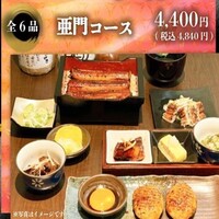 ※システム上、滞在時間が1時間30分となっておりますが、閉店までご利用可能です。 気軽に満足!うなぎで乾杯 お1人様6品 ※お料理の選択は当日お伺いいたします。 飲み放題プランもあります。 ※当日、スタッフにお声がけください。