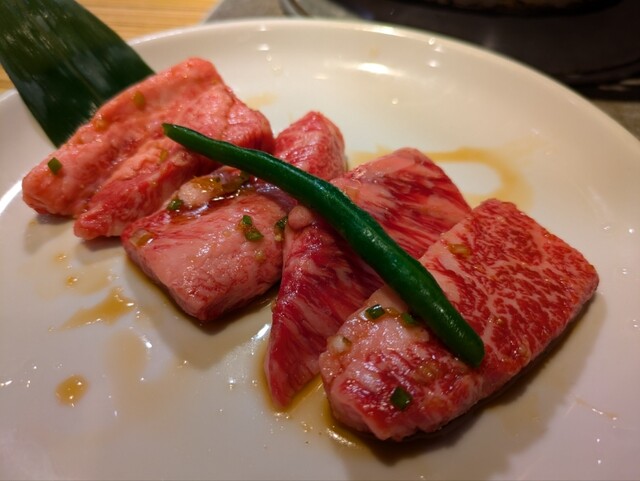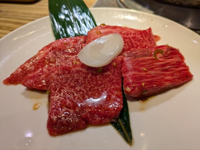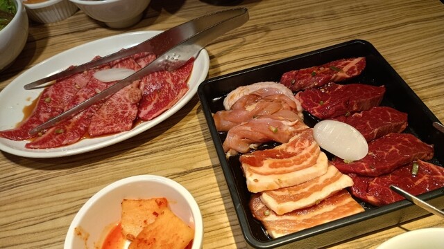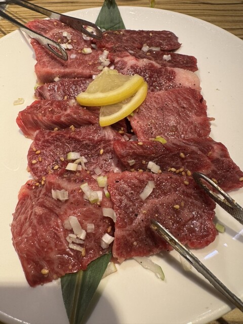 何度か最近利用してます。 特選はらみが美味しすぎて、いつも彼の分と2人前ずつ頼みます。 だいたい頼むものは同じなんだけれど… ・特選はらみ たれ×2 何も味付きなし×2 ・オイキムチ ・スエヒロサラダ(ネギ抜き) ・ナムル盛り ・上タン塩×1 ・上レバー焼×1 ・ホタテ焼 ・ホルモン味付けなし×1 ・抹茶アイスクリーム に、黒烏龍茶ですっ٩(ˊᗜˋ*)و... 詳細を見る
