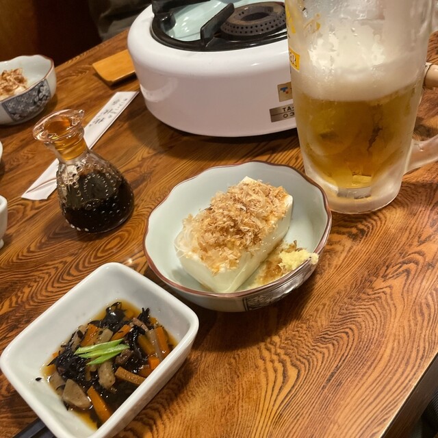 料理はひじき煮から冷奴など安定した居酒屋メニューが続きます。肝焼きやカブト...