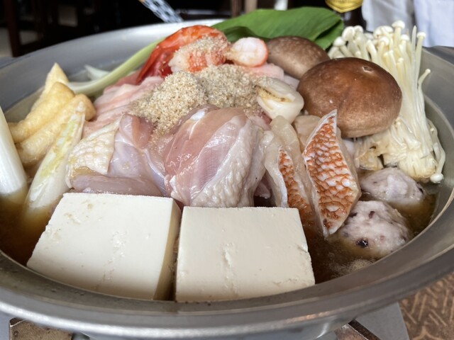 野菜と魚介とお肉の旨味がスープに溶け込み、具材に染み込む事で美味しく豊富な栄養が摂れるお鍋は当店の看板メニュー。