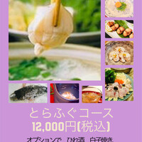 【とらふぐコース】期間限定◆ふぐの王様「とらふぐ」を刺身、鍋、唐揚げなど様々な調理法で味わい尽くす7品