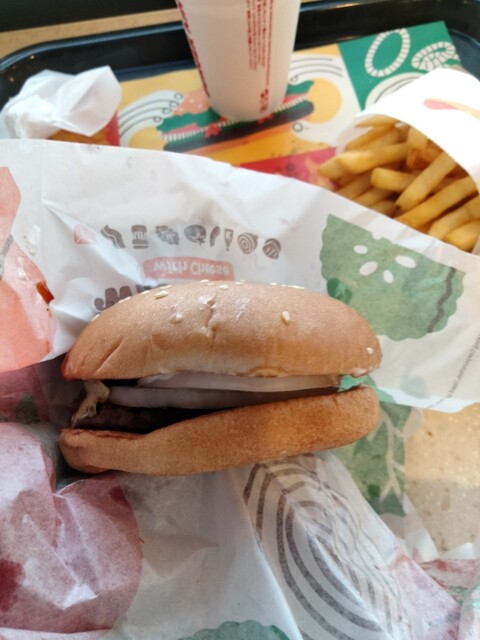 トップ画面がいきなりオススメのヘビーそうなバーガーが出てきてビビる。
