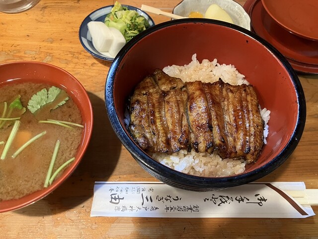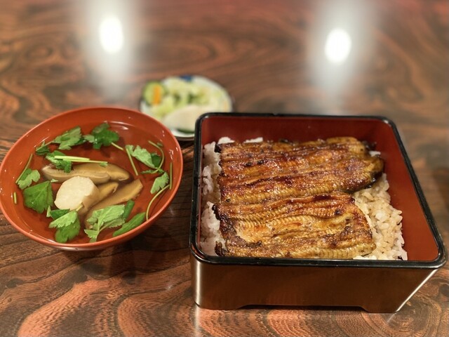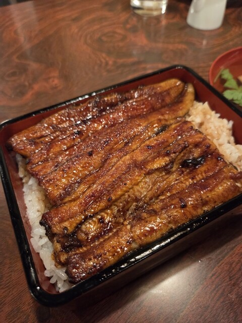 ランチタイムサービスはAM11時〜PM2時。 カツ重900円に焼きとり重も気になりますが、 前回食べて美味しかった「うな重(A)」味噌汁・香物・デザート付き1500円をライス大盛り+130円でお願いしました。 約10分程で着丼です。 赤出汁の三つ葉と豆腐のみそ汁から頂きます。 うな... 詳細を見る
