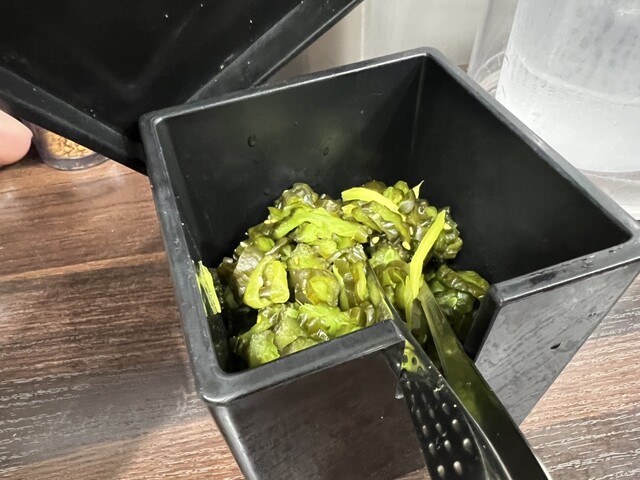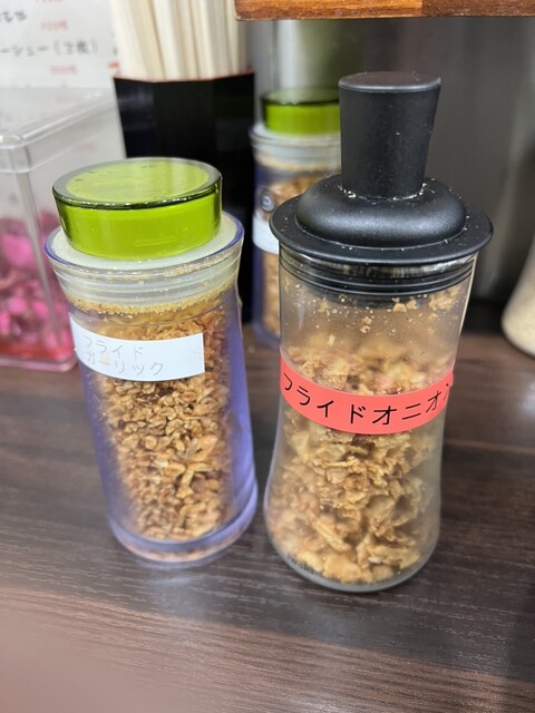 途中で卓上のフライガーリックとフライオニオンを投入すると、これがまたパンチのある味変に大変身!香ばしさが加わって、スープがさらに深みのある味に進化していきます。これはクセになる!!