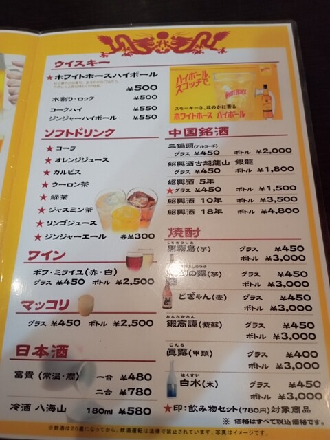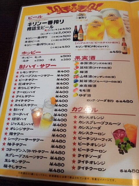 値段設定がちょっと不思議。飯類、麺類に比べると一品料理の値段が高めに思います。どうやら、飲み放題、食べ放題があるからではと。