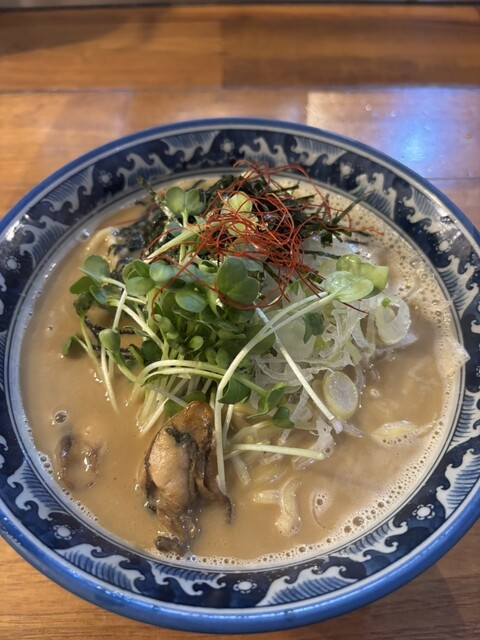 スープに広島県産の牡蠣をふんだんに使って無化調で作り上げた【濃厚牡蠣だしスープ】のラーメンです。ぜひ一度御賞味ください!!