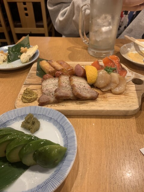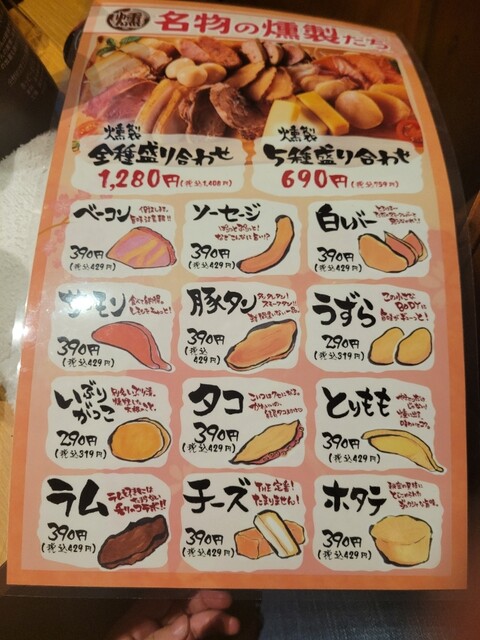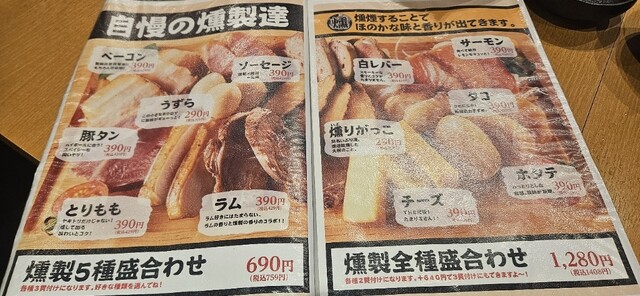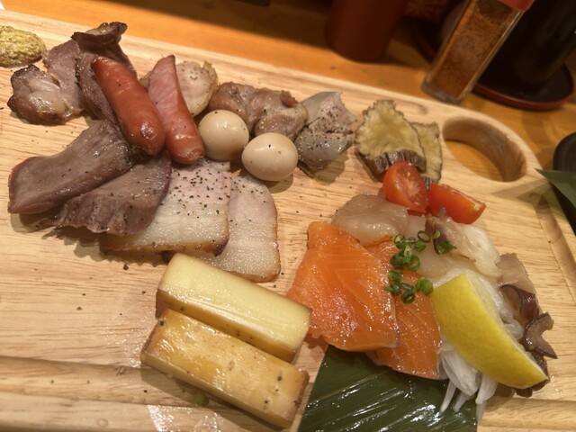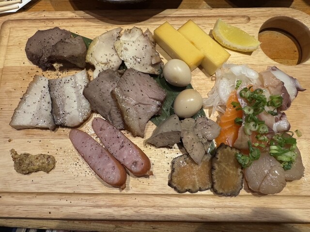 ここは何度かリピしています。燻製が美味しいです!本格的でお肉やチーズ、いぶりがっこなど色々楽しめて楽しいです。タコの燻製が珍しくて美味しかったです!