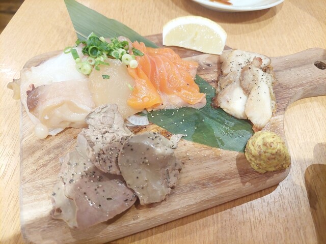 燻製料理が自慢ということで、とりあえず5種盛り合わせを注文。12種ある中で好きな5種を選択でき、基本同じような味付けでしたが、肉系はしっかり香ばしく炙られて美味しく、タコも食感も味も良く酒のつまみ...