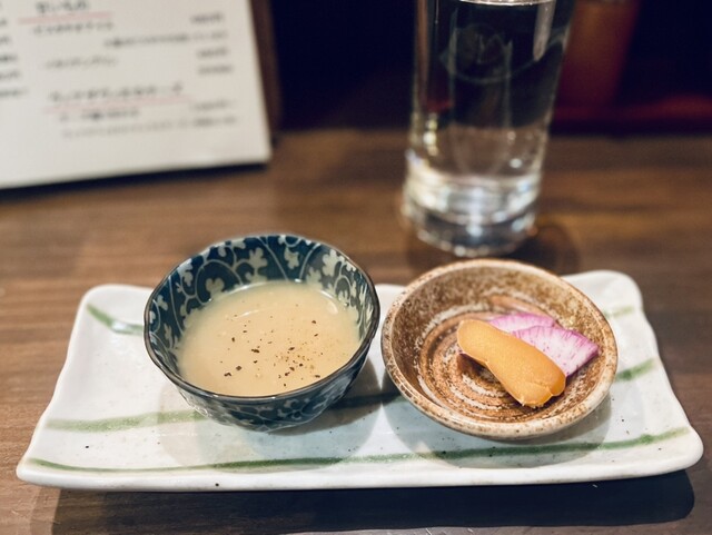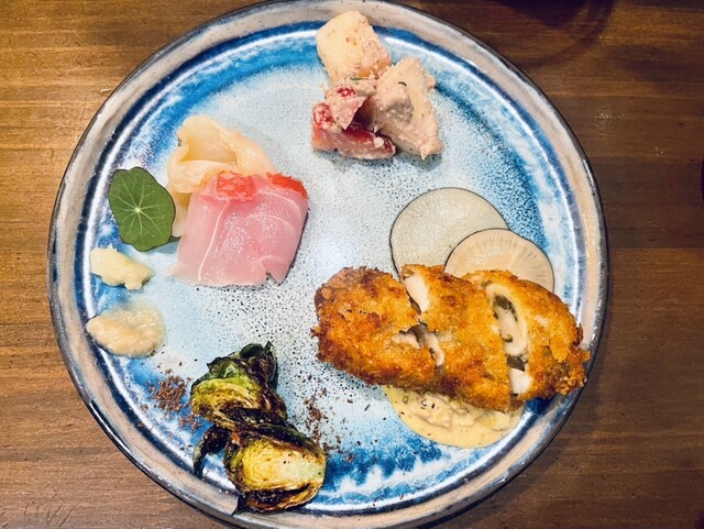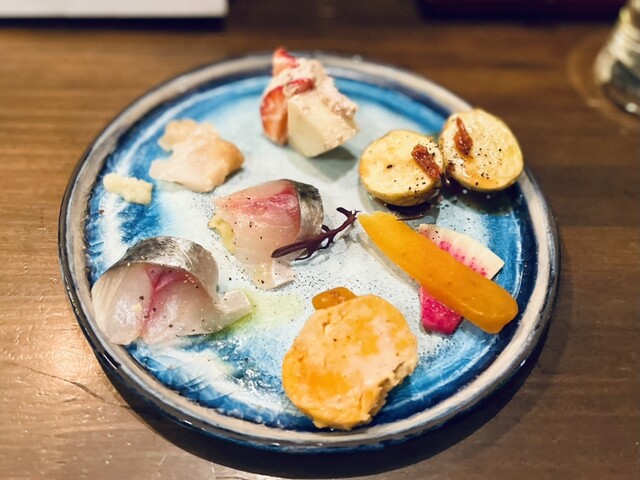 仕事を終えて、今年最初のオリゼーさん。 インスタを見たら席は空いている様で、みかんのゼリーが美味しそう。 予約して19時50分ごろ到着。 @3,000円のコースとお酒をおまかせでお酒を5酒呑んだ。 ・お通し(パースニップのポタージュとスズキの南蛮漬け) ・6点盛り ・三元豚と大根の揚... 詳細を見る