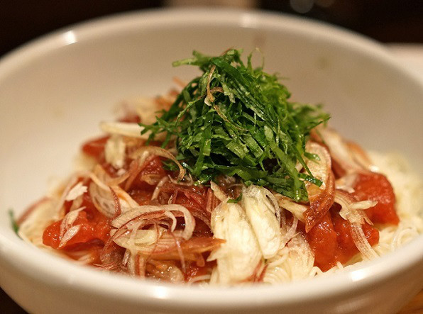 個人的には、新玉ねぎの冷製スープと、お刺身の中のマグロのワイン漬けとクリームチーズがとてもお気に入りでした!
