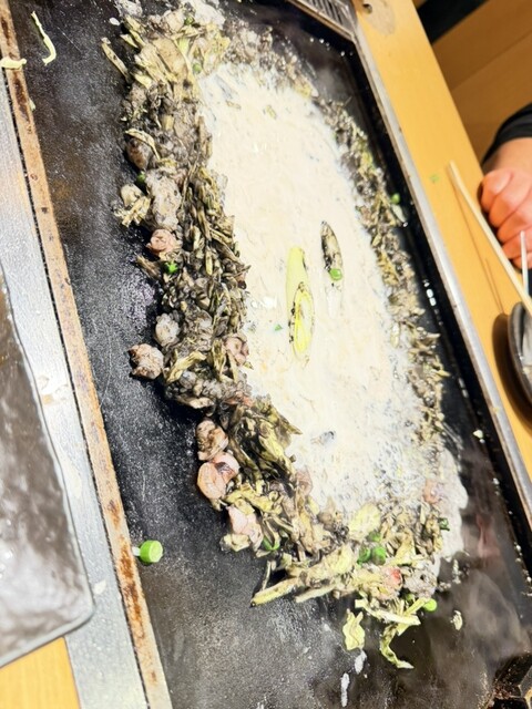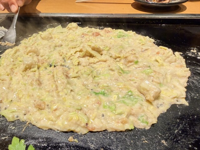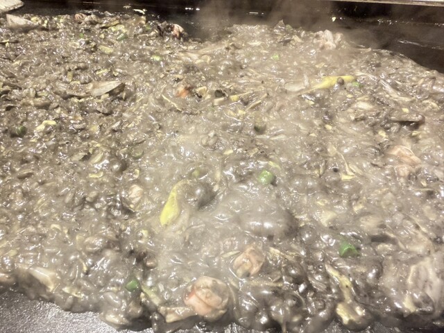 1番人気は明太子のもんじゃとのことでしたが、イカ墨のもんじゃって想像つかないのでイカ墨もんじゃ1880円にチーズ300円のトッピングを頼んでみました。