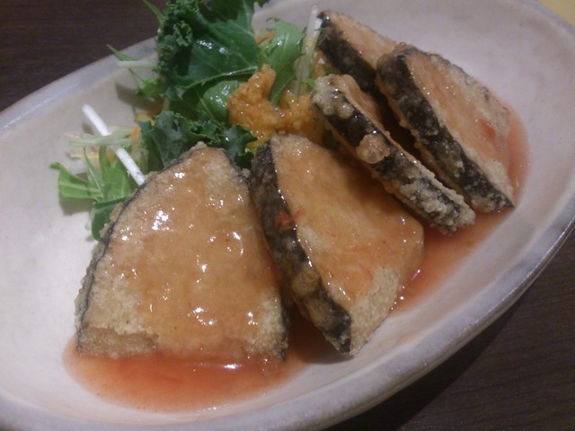 2018.03 夜 1人 2750円 ・魚風の揚げ物 950円 ・季節野菜 950円 ・揚げ豆腐と野菜のピリ辛煮込み 950円 ・餃子 650円 ・熱燗 500円×... 続きを読む»