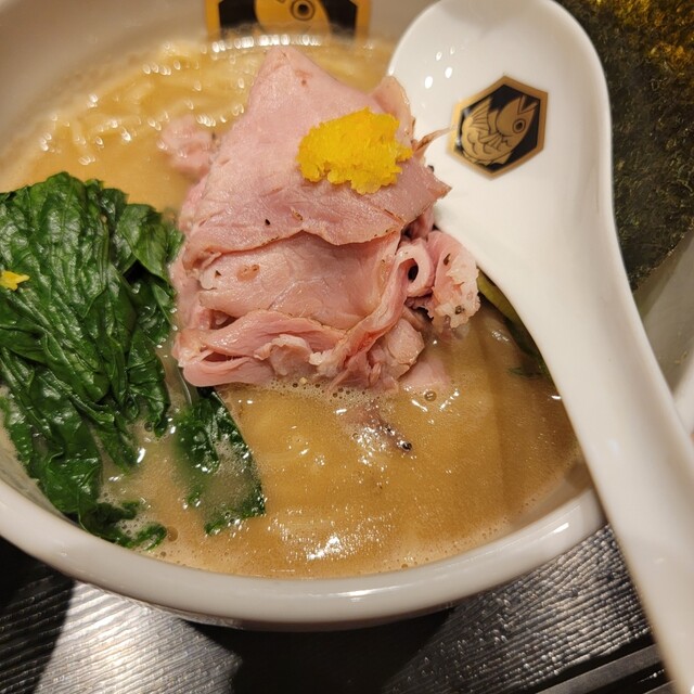 ラーメン店としては、錦糸町一、有名であろう「麺魚」。 本店も駅からそう遠くないのに、駅近のすみだフードホールにも、支店がある。 真鯛ラーメン(1045円)をお願いする。 やはりスープが唯一無二。 焼いた鯛の香ばしさ、旨味が、スープに閉じ込められている。 本店と全く違いはないのでは。... 詳細を見る