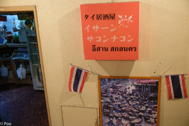 その夜、仕事仲間たちと連れ立って向かったのは、繁華街の雑踏の中にひっそりと佇むビル。その上階に、まるでタイの夜市の一角を切り取ったかのような居酒屋「イサーン サコンナコン」があるという。看板にはタイ文字が踊り、薄暗い階段を上っていくと、階下の喧騒が少しずつ遠ざかり、代わりに異国の香りが鼻をくすぐってきた。ナンプラーとレモングラス、唐辛子が入り混じった、あのタイ特有の熱を帯びた匂いだ。