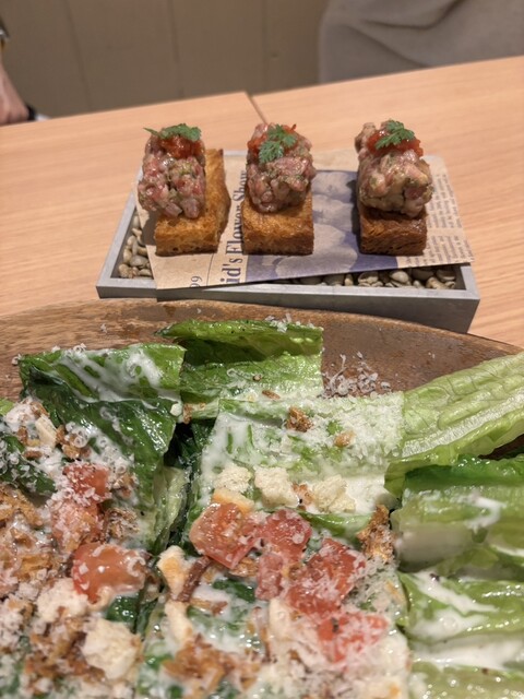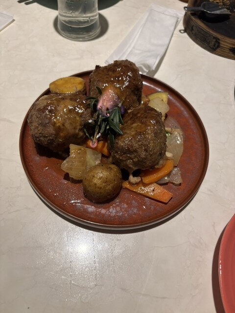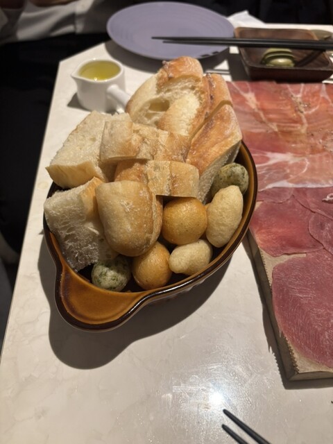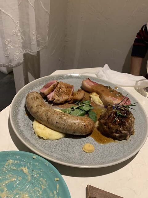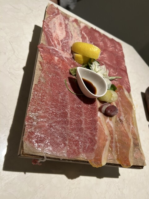 コースにしては1人分の量も多く、前菜の3種の生ハムがとても美味しかった。