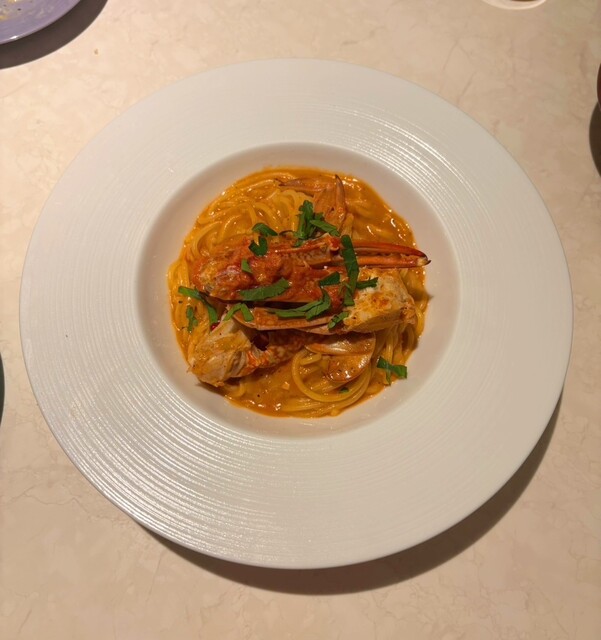 渡り蟹のパスタを食べたくて当日に電話して訪問。お席は全て半個室になっており、デートや女子会に良さそう!飲み物はノンアルコールも充実している。肝心のパスタもトマトクリームソースで濃厚に頂きました!※電波ない