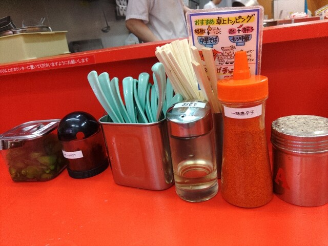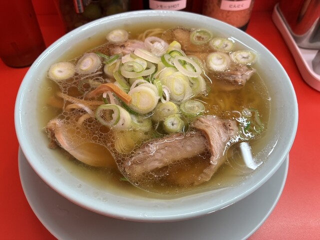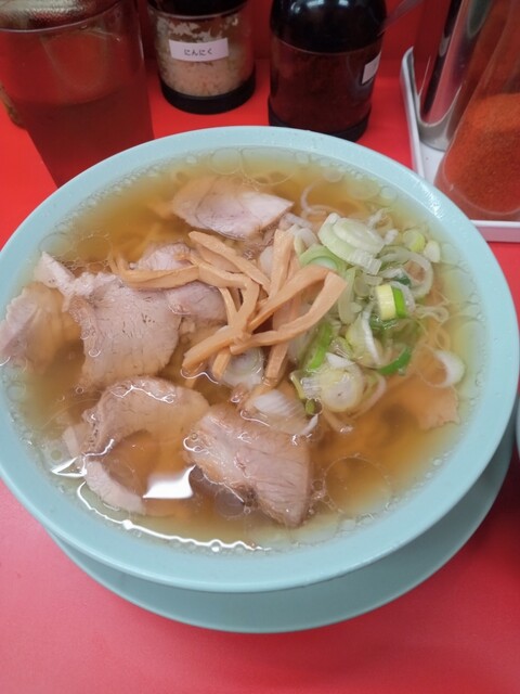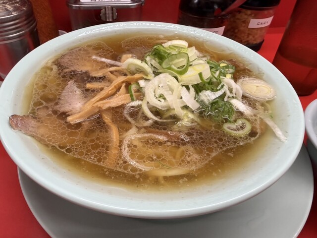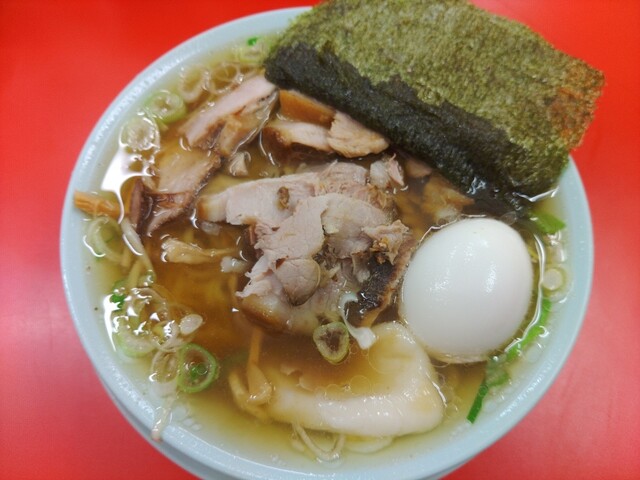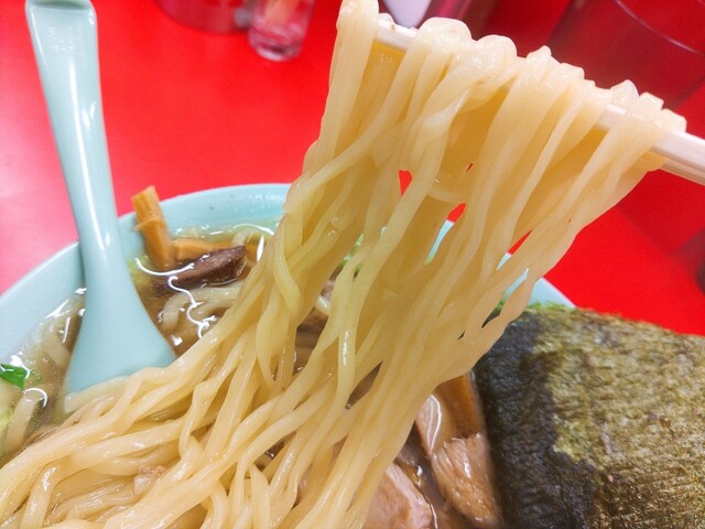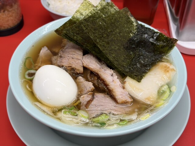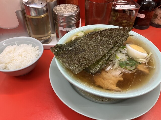 ちゃん系を食べたくて来店。ランチタイム12時くらいに到着。五人待ち。食券上中華そば1200円を購入。普通と何が違うかよくわからなかったけど、半卵と海苔5枚になるもよう。食券機の下にあるご飯の緑の札も忘れずに持って行きます。 十分くらい待ってからお店に入れ、ラーメンを待ちます。 並々と盛られた油で... 詳細を見る